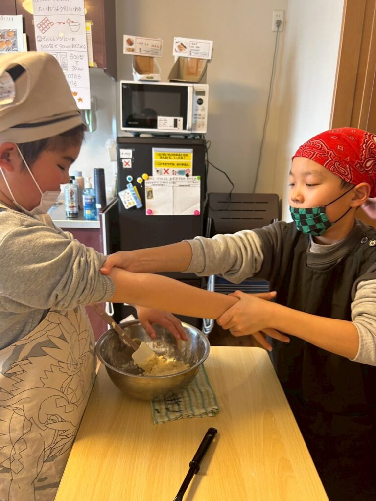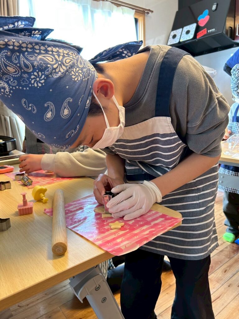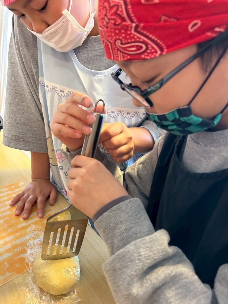 クッキングは慣れているので、みんなお手のもの。分量をしっかり計りこねて丸めて型取り。様々な型取りができました✨