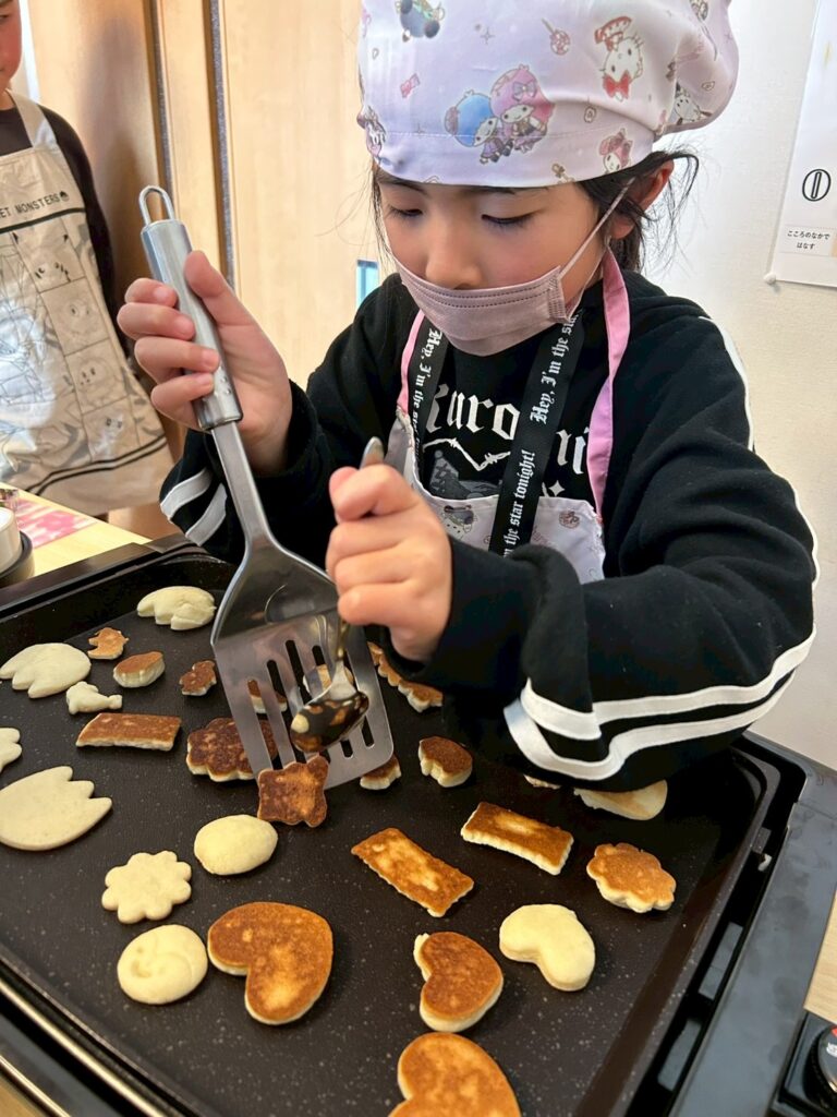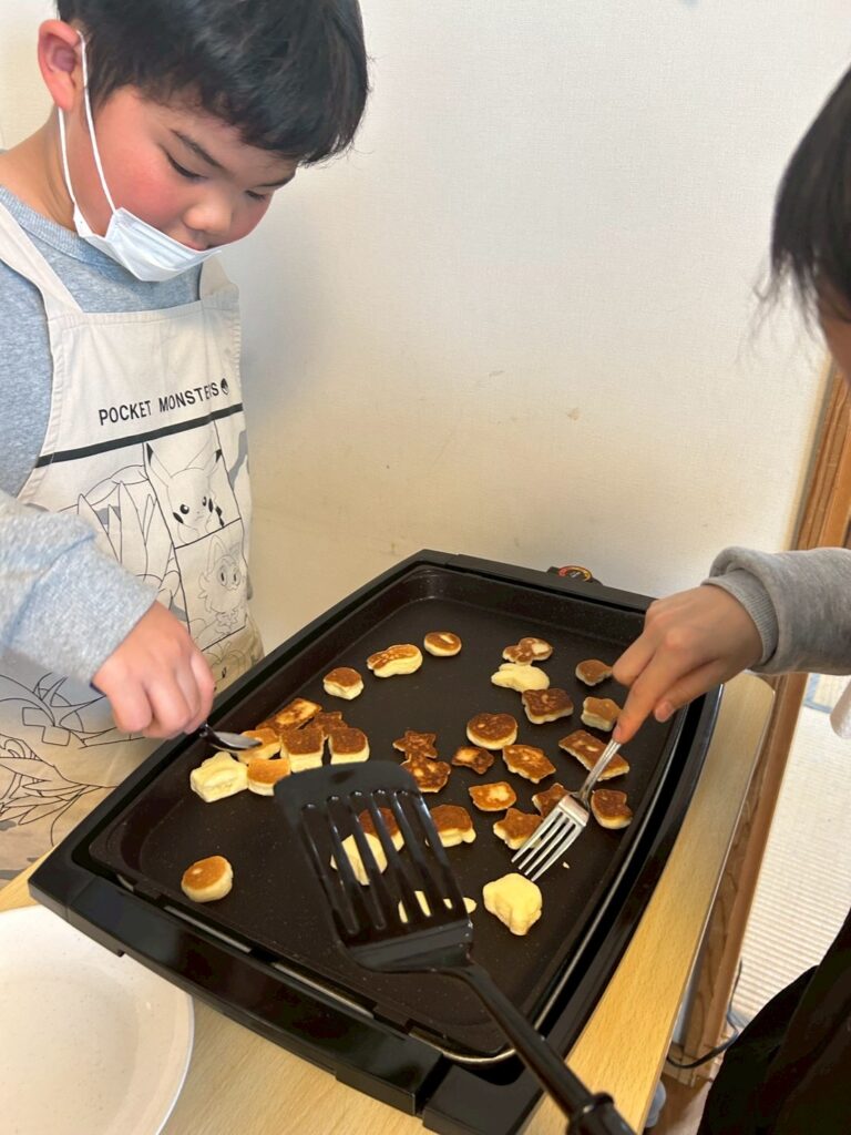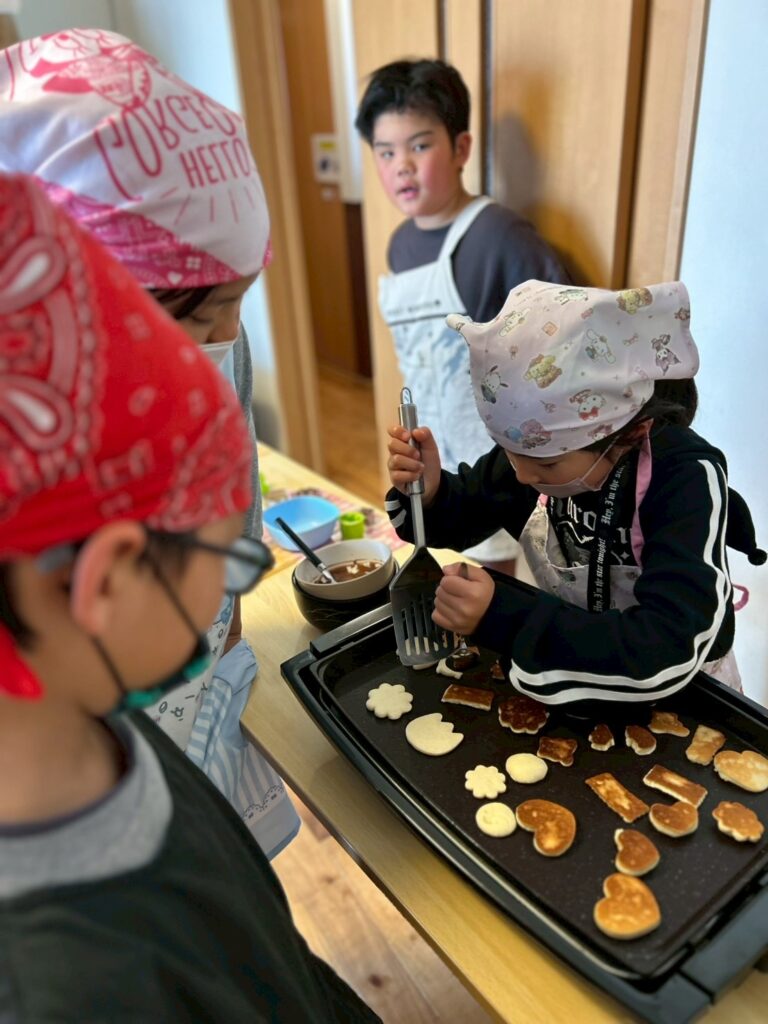 焼くのも慎重に、、。様々な大きさや厚さ、形も違い焼き時間はどのくらいだろう?🤔と話し合い。それも勉強だな〜と見守っていました♡