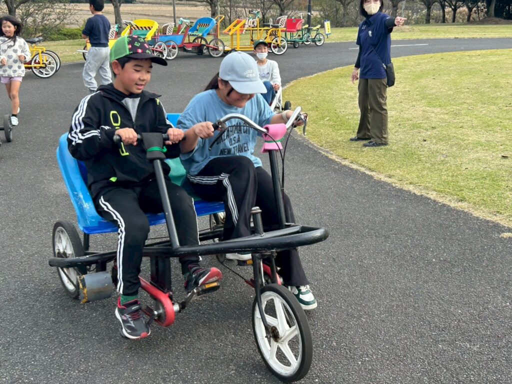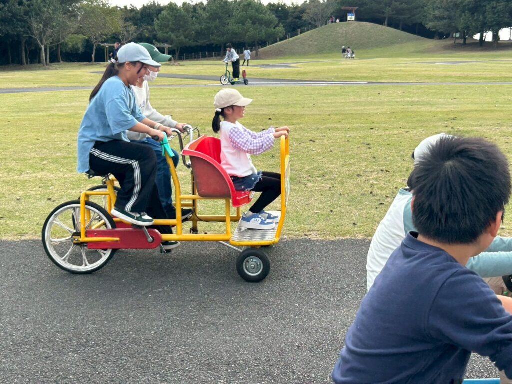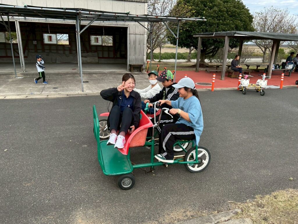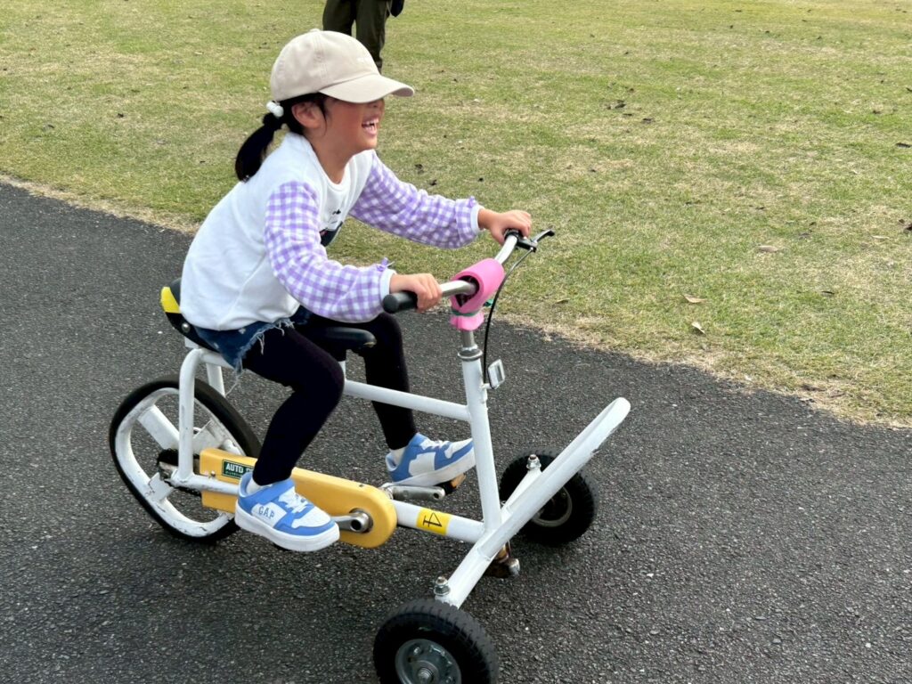 バトミントンやフリスビーで体を動かした後はみんなで自転車コーナーへ。様々な自転車に体をたくさん動かして楽しまれていました🚲