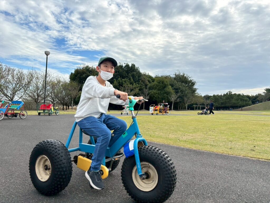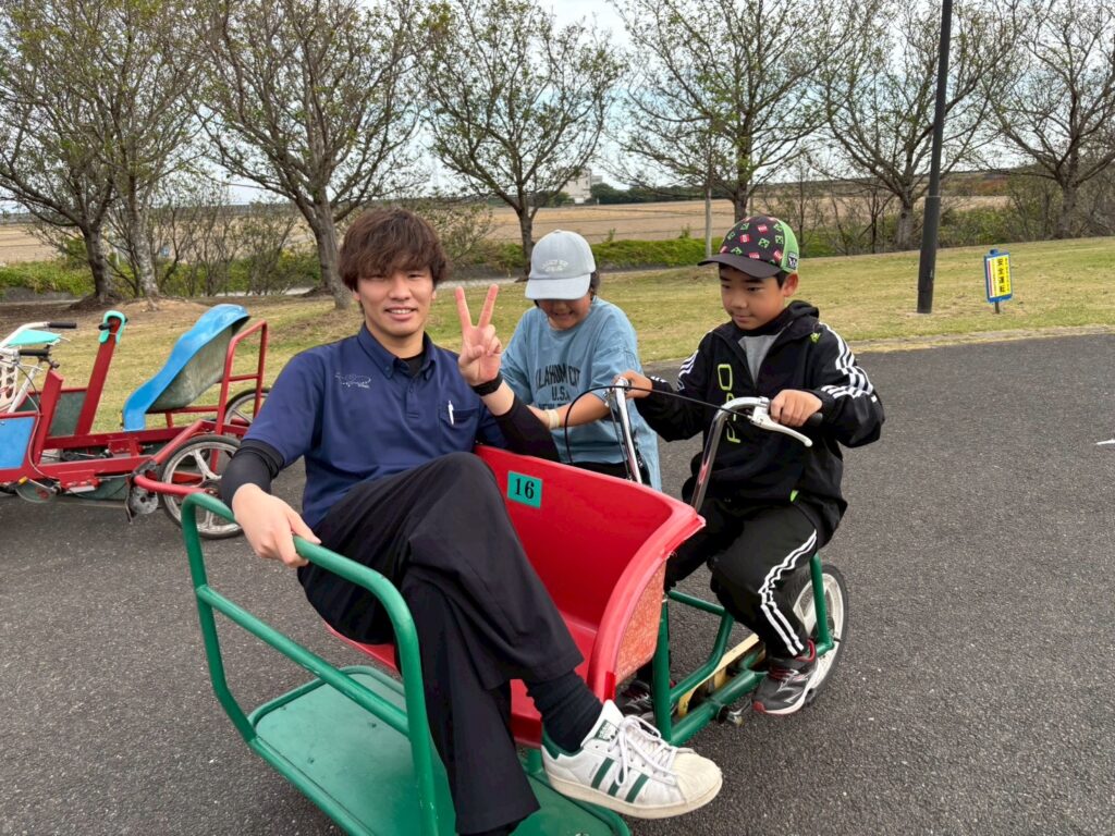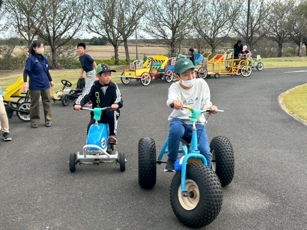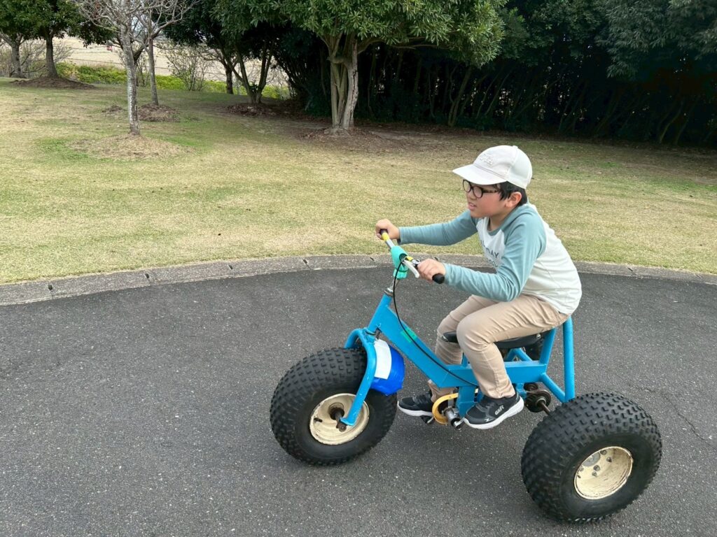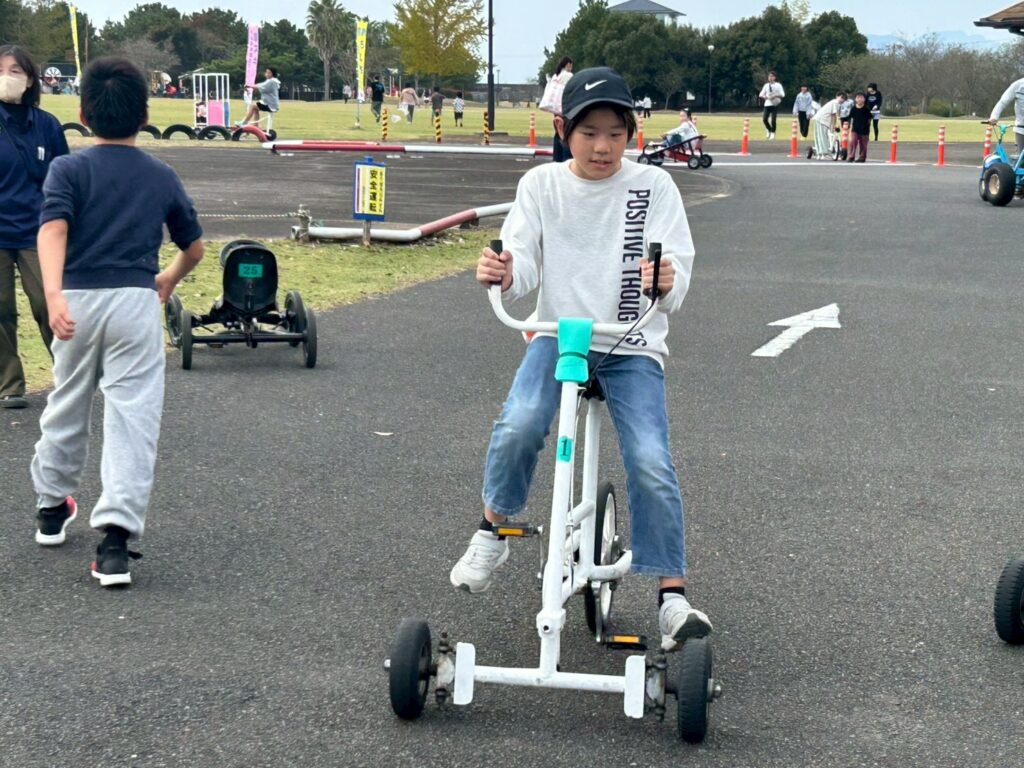 バトミントンやフリスビーで体を動かした後はみんなで自転車コーナーへ。様々な自転車に体をたくさん動かして楽しまれていました🚲